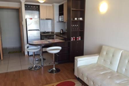 Close to both Viña del Mar Municipal Theatre and Artequin Museum, Depto AV Alvarez 1822 SinEstacionamiento A pie del terminal is situated in Viña del Mar and has a fitness room and garden. It is located 1.2 km from Viña del Mar Bus Terminal and offers a lift. The apartment provides a sun terrace, a 24-hour front desk, and free WiFi is available throughout the property.